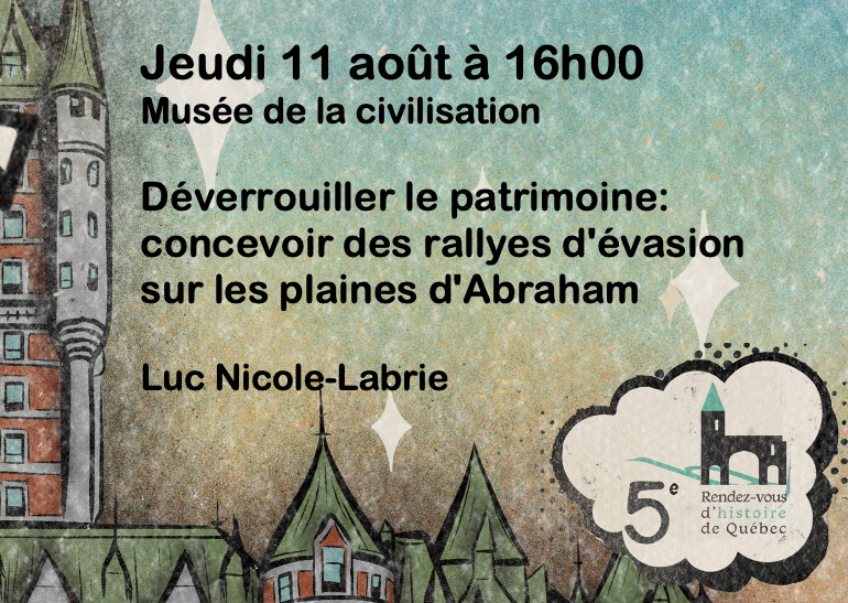 Depuis 2020, l’équipe de la Commission des champs de bataille nationaux propose des sacs rallyes évasion, sortes de jeux d’évasion portatifs. Ces expériences, qui proposent des énigmes alliant défis physiques et intellectuels, ont été développées pour faire découvrir des pans méconnus de l’histoire des plaines d’Abraham, tout en offrant une visite autonome du site. Quelles sont les étapes de création et les défis du développement de ces rallyes? Comment l’équipe de la CCBN a-t-elle bénéficié de l’aide précieuse d’un collaborateur externe (Freemick Aventures) pour y arriver? Cette conférence lèvera le voile sur le processus de création, sur les compromis nécessaires pour concilier le récit historique et le jeu d’évasion. Il sera aussi question du désir de faire vivre une expérience aussi authentique que possible, dans un contexte détendu où l’histoire semble être une trame de fond alors qu’elle est le principal pôle d’attraction!
