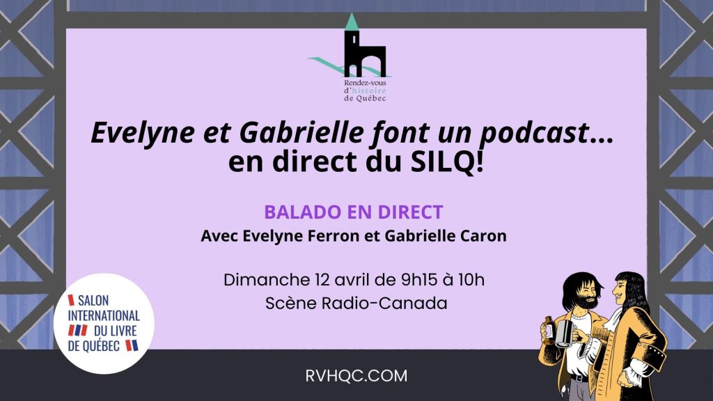 En direct du Salon international du livre de Québec, Evelyne Ferron et Gabrielle Caron enregistreront un épisode devant public pour nous faire découvrir des femmes de l’ombre dans l’histoire de la Nouvelle-France et du Québec. Créé en 2021, le balado Evelyne et Gabrielle font un podcast rassemble l’historienne Evelyne Ferron et l’humoriste Gabrielle Caron. À chaque épisode, elles choisissent un sujet et en discutent, mélangeant tranches de vie, anecdotes personnelles, rires et histoire avec un grand H.