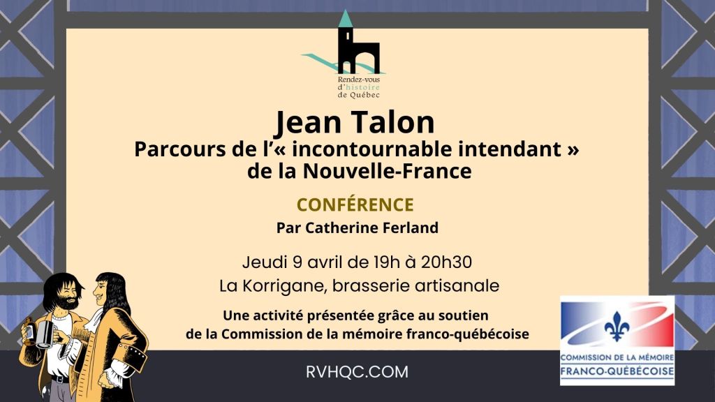 Né en Champagne en 1626, puis instruit à Paris, Jean Talon est nommé intendant de la Nouvelle-France à un moment crucial du développement de la jeune colonie. À l’occasion du 400e anniversaire de naissance de cette importante figure de notre histoire québécoise et canadienne, cette conférence permettra de mieux connaître le parcours (incluant ses activités brassicoles!) de cet homme que la supérieure des Augustines de Québec a surnommé « l’incomparable intendant ».