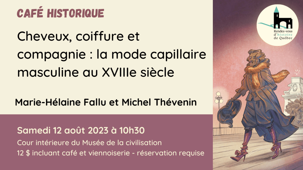 Robes extravagantes et perruques poudrées… Le XVIIIe siècle est, hélas, souvent réduit à cette image dans l’imaginaire collectif du XXIe siècle. Bon nombre de films qui traitent de cette période insistent sur ces deux éléments, avec d’ailleurs une nette préférence pour la mode féminine. Nous proposons de revenir sur cette image de faste vestimentaire et capillaire qui reste associée au siècle des Lumières, en présentant les mythes et clichés véhiculés par le cinéma au sujet de la mode masculine du XVIIIe siècle, et en les confrontant aux sources tant écrites qu’iconographiques de l’époque. Nous accompagnerons notre conférence d’une partie plus « concrète », sous la forme d’une démonstration de coiffure masculine du XVIIIe siècle, Michel servant de cobaye à Marie-Hélaine pour donner un exemple visuel en direct – et bien poudré! – de notre propos.